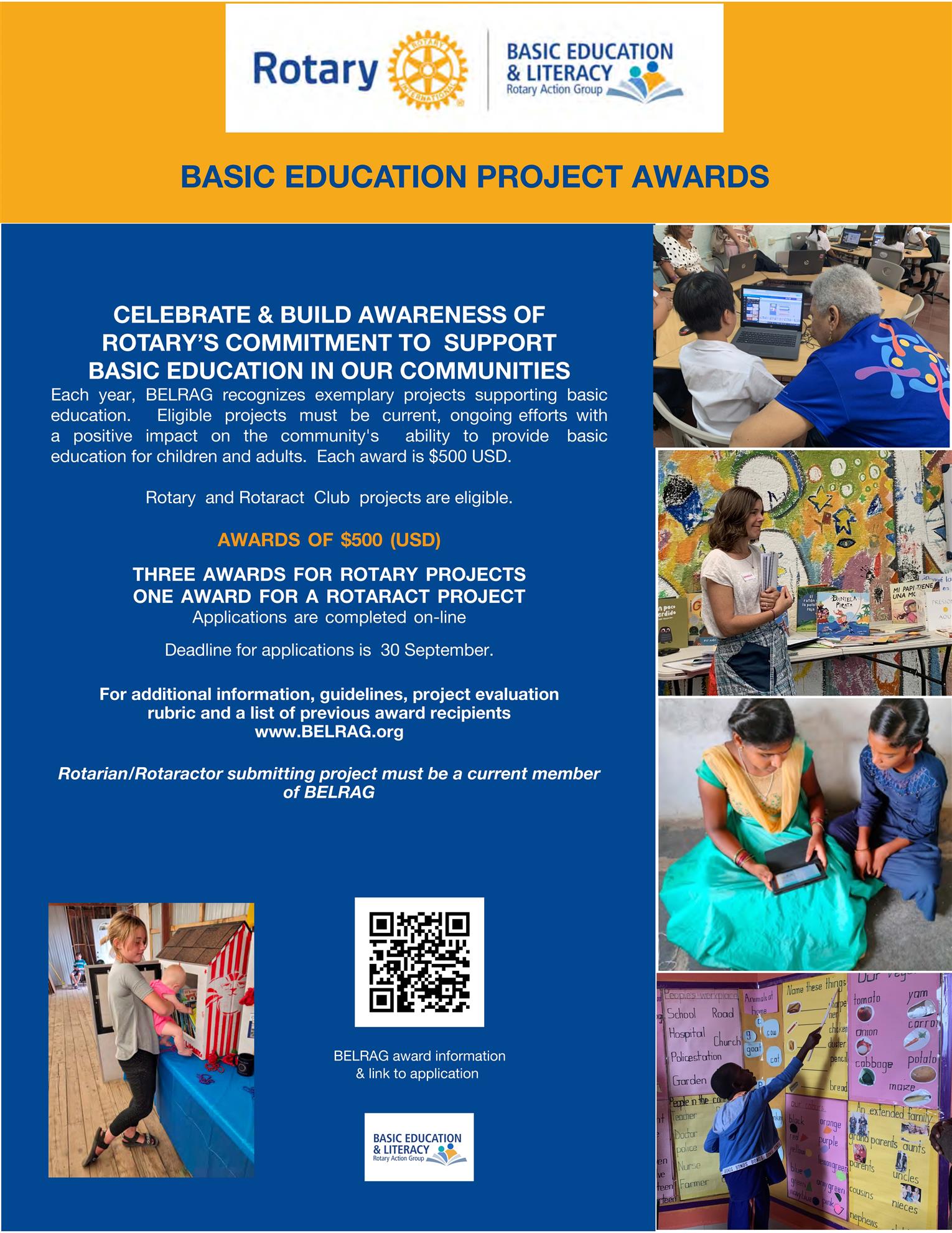Applications are online. Use these links to submit one (or more!) projects supporting basic education and literacy and see the rubric used to score projects.